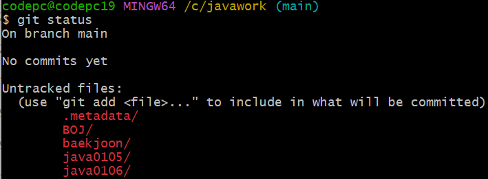 → 'git add .' 으로 모든 파일을 스테이징합니다. → ' git commit -m "메세지" '로 모든 파일을 커밋합니다.