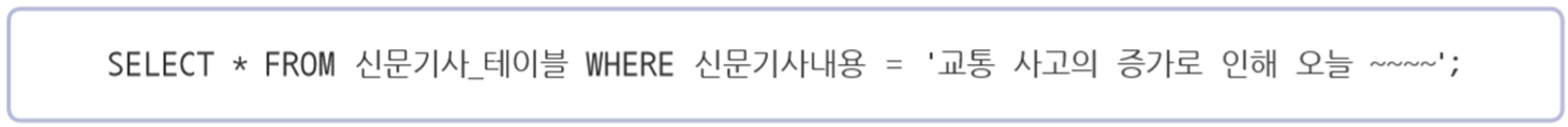 ◎ 전체 텍스트 검색 ▷ 긴 문자로 구성된 구조화 되지 않은 텍스트 데이터(예로, 신문 기사) 등을 빠르게 검색하기 위한 부가적인 MySQL의 기능 ▷저장된 텍스트의 키워드 기반의 쿼리를 위해서 빠른 인덱싱 가능
