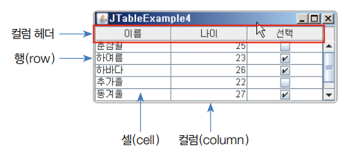 | 1 | table | 셀을 포함하고 있는 JTable |