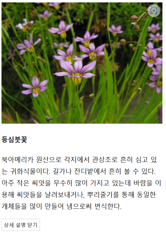 아래의 사진에서 상세 설명 보기를 클릭하면 꽃에 대한 설명이 나타납니다.