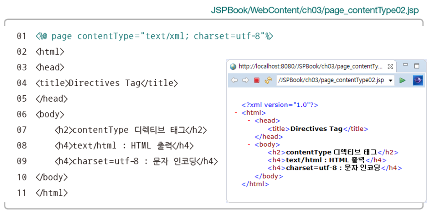 ▷ HTML을 출력하는 JSP 페이지는 contentType을 사용할 필요가 없음