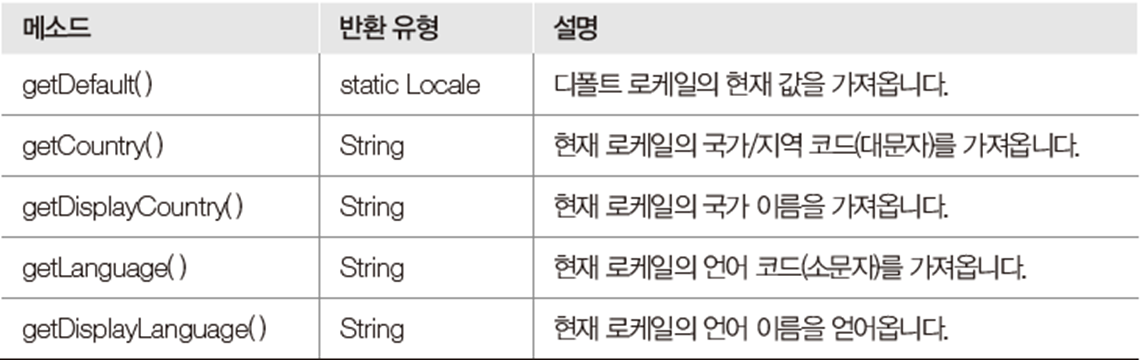 ▶ 예를 들어 웹 페이지에 보이는 메시지가 여러 가지 언어로 주어졌을 때 사용자가 어떤 언어로 출력할 것인지 결정할 수 있게 하는 수단이 바로 Locale 클래스