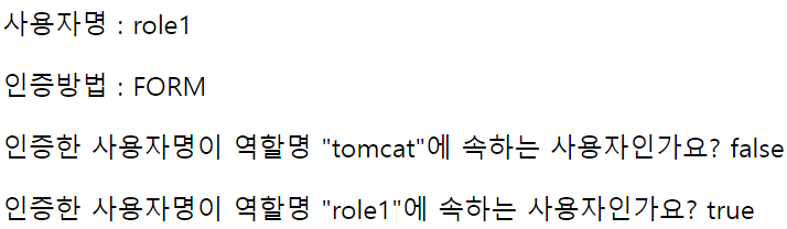 role1, both는 로그인이 됩니다. 만약 password가 틀리면 인증 실패 화면이, 맞으면 인증 성공 화면이 나타납니다.