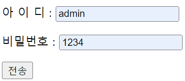 <%@ page language="java" contentType="text/html; charset=UTF-8" pageEncoding="UTF-8"%> <!DOCTYPE html> <html> <head> <meta charset="UTF-8"> <title>Session</title> </head> <body> <% String user_id = request.getParameter("id"); String user_pw = request.getParameter("passwd"); if(user_id.equals("admin") && user_pw.equals("1234")){ session.setAttribute("userID", user_id); session.setAttribute("userPW", user_pw); out.println("세션 설정이 성공했습니다<br>"); out.println(user_id+"님 환영합니다"); } else{ out.println("세션 설정이 실패했습니다"); } %> </body> </html>