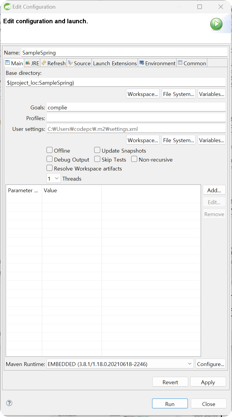 (2) Run As → Maven build(3번) → Goals (compile 작성) → Run