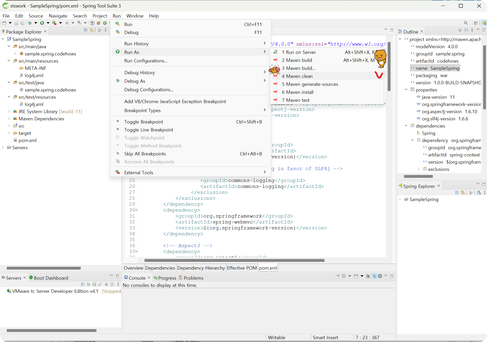 (1) Run As → Maven clear(4번)