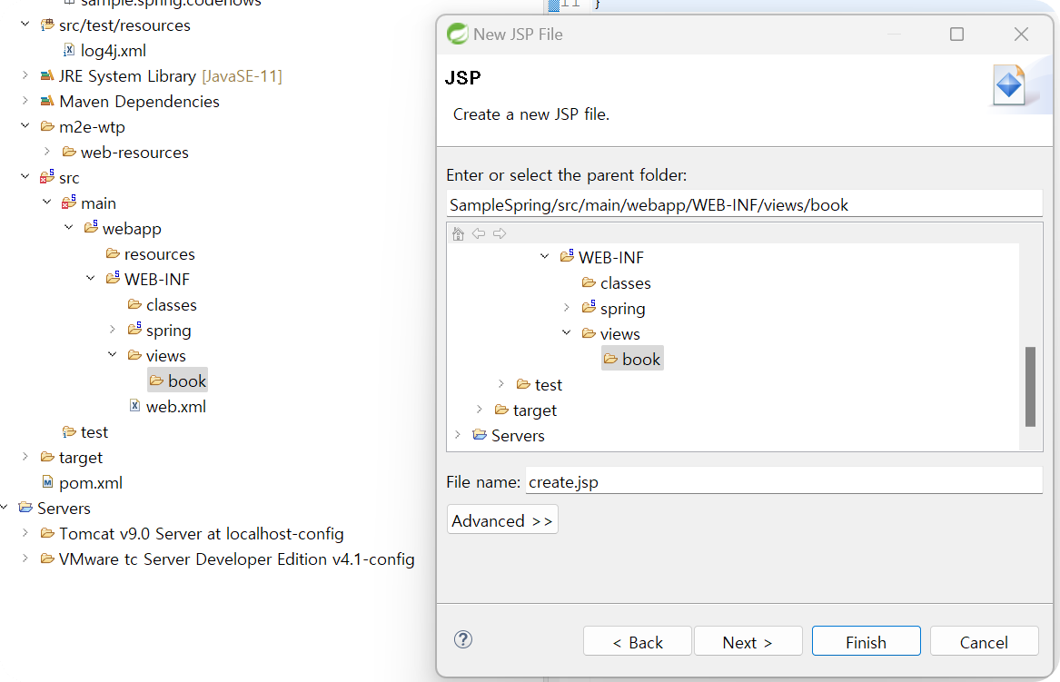 ◎ src → main → webapp → WEB-INF → views → book 폴더 생성 → create.jsp 파일 생성