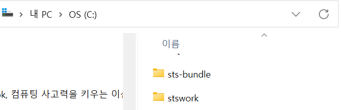 1. C 드라이브에 해당 zip 파일의 sts-bundle 폴더 압축 풀기