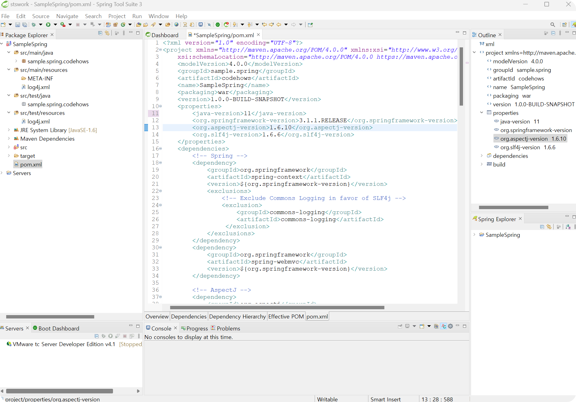 <properties> <java-version>11</java-version> <org.springframework-version>5.2.5.RELEASE</org.springframework-version> <org.aspectj-version>1.6.10</org.aspectj-version> <org.slf4j-version>1.6.6</org.slf4j-version> </properties>