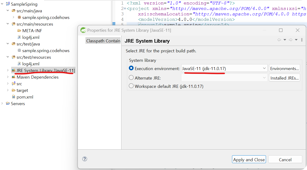 3. SampleSpring → Properties → Project Facets → Java(Version 11로 변경)