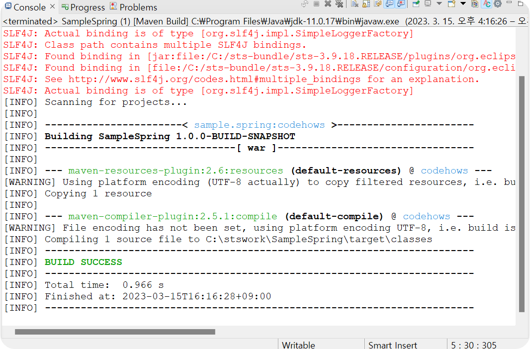 → 아래와 같이 BUILD SUCCESS가 나타나면 성공입니다.