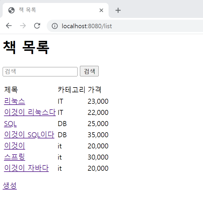 1. 책 검색 기능 : 목록 화면에서 검색어를 입력하고 검색 버튼 클릭하면 검색 주소로 이동