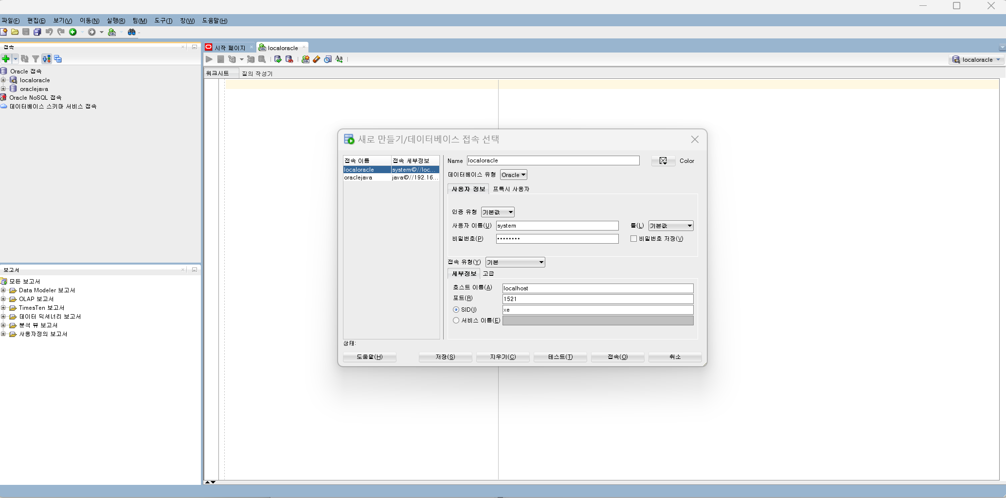 ◎ 오라클 접속 및 왼쪽 상단 + 버튼 선택해서 사용자 추가