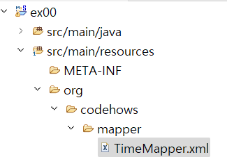 ◎ ex00 → src/main/java → org.codehows.mapper → TimeMapper.java