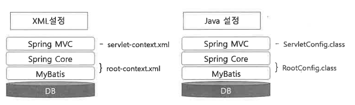 ▷ 내부적으로 root-context.xml로 사용하는 일반 Java 영역과 servlet-context.xml로 설정하는 Web 관련 영역을 연동해서 구동