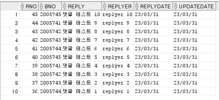 ▷ 댓글 처리 역시 화면상에서 페이지 처리가 필요할 수 있으므로 Criteria를 이용해서 처리