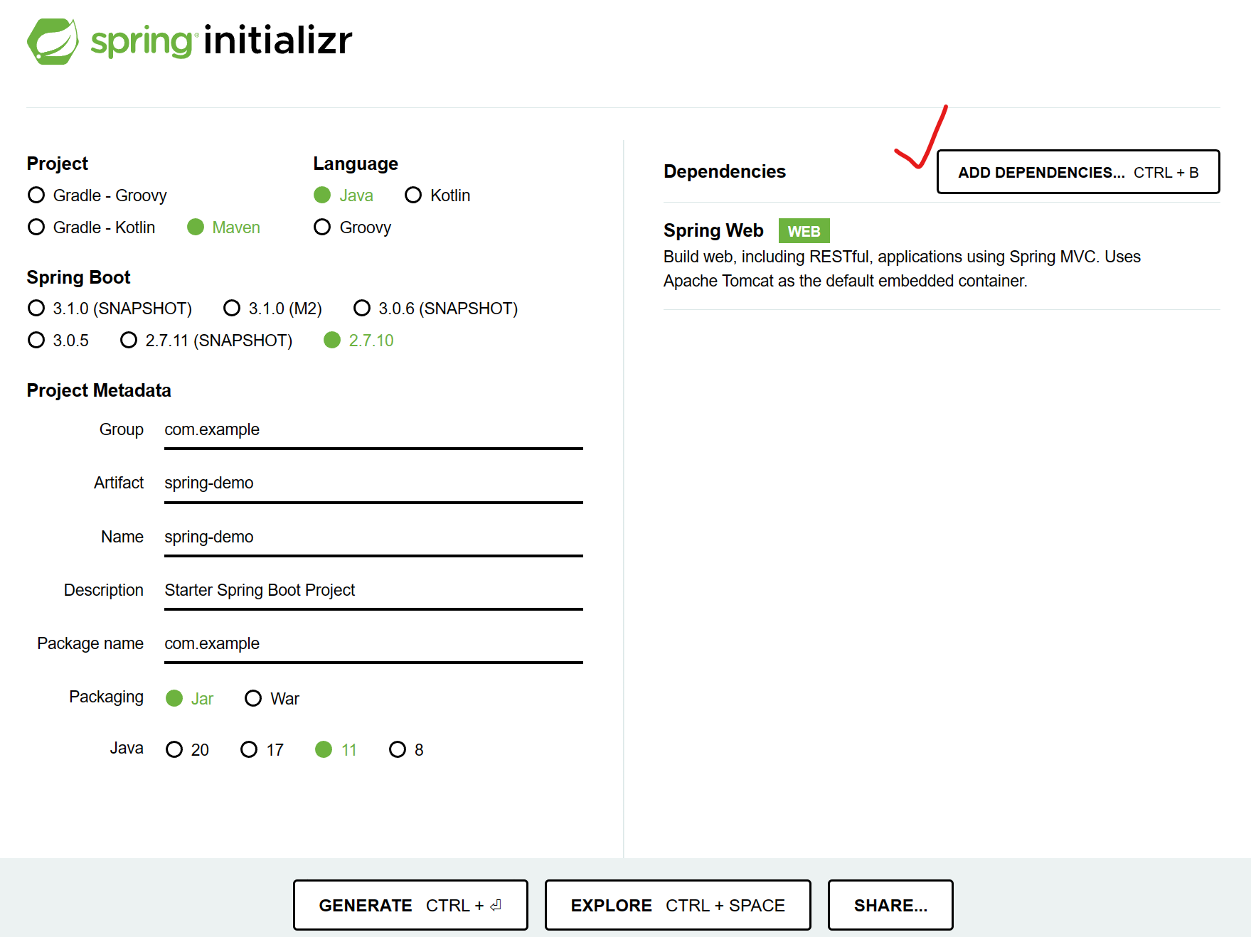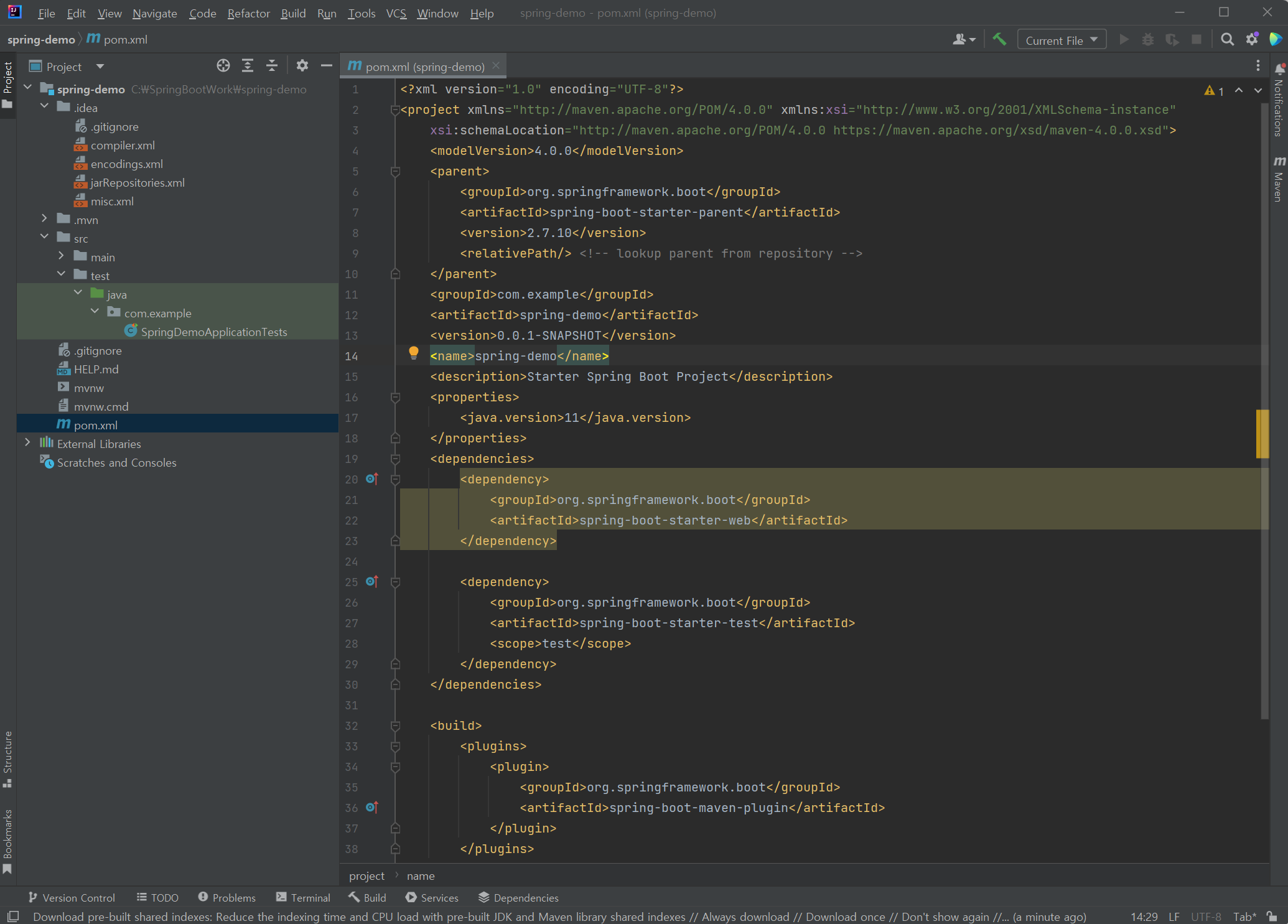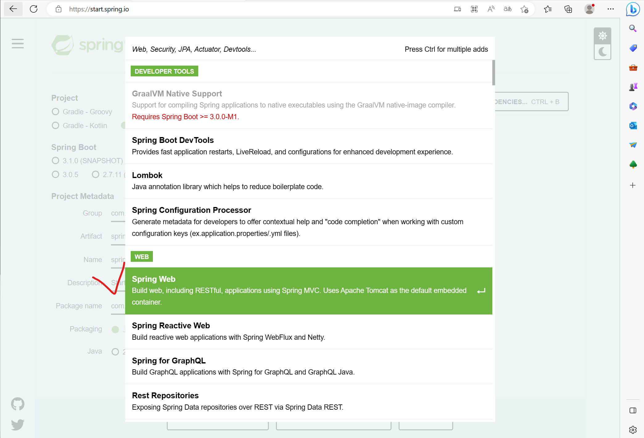 ▷ spring-boot-start-web이라고 적혀져 있어야합니다.