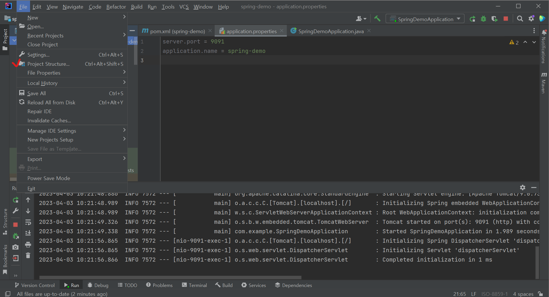▷ src/main/java/com.example → SpringDemoApplication 클래스 수정
