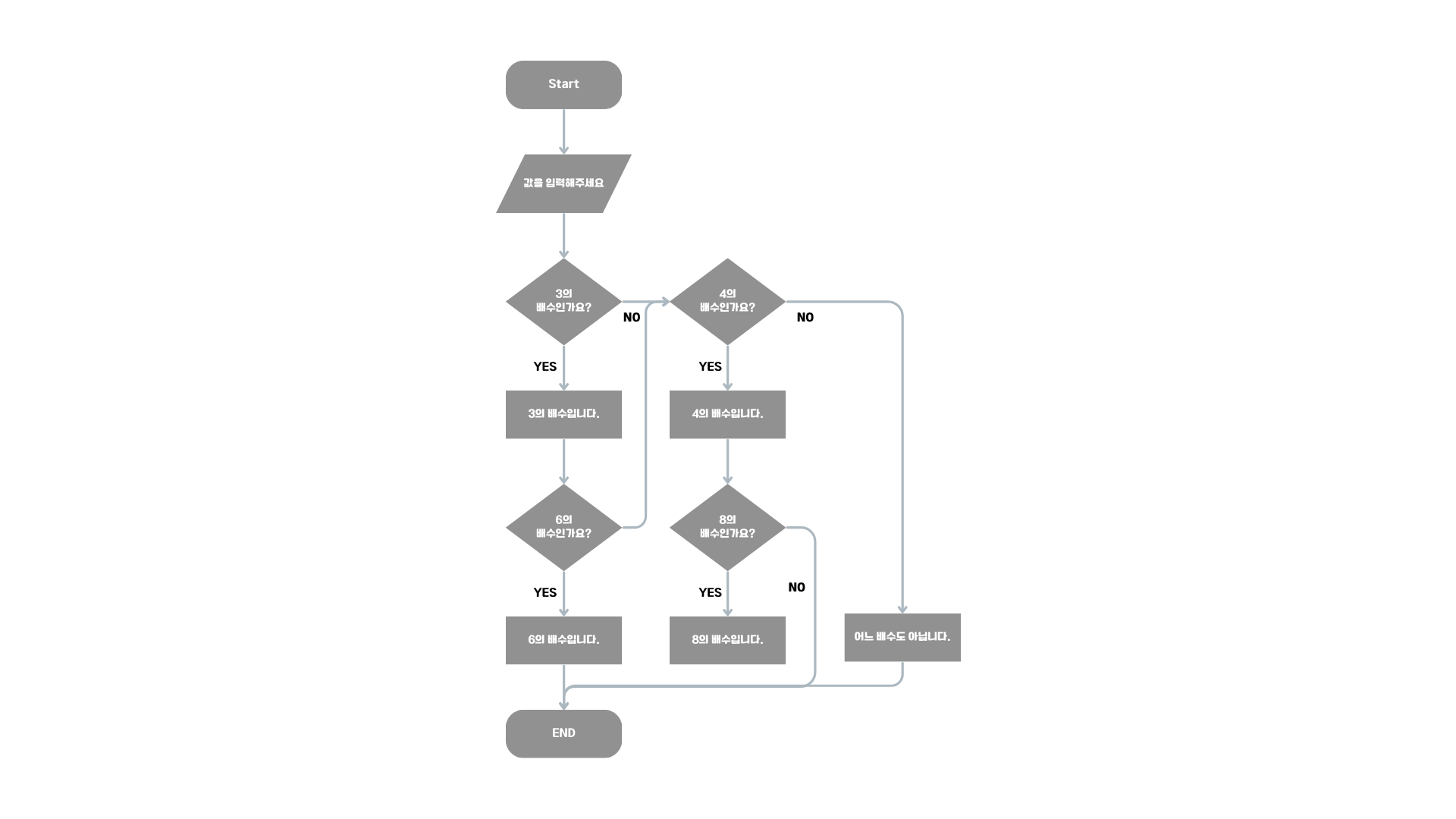 2. 입력받은 숫자가 4가지 배수 중 하나를 만족하면 해당 배수입니다. 라는 문구를 출력