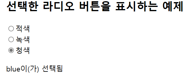 <h2>선택한 라디오 버튼을 표시하는 예제</h2>