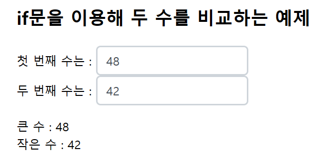 <h2>if문을 이용해 두 수를 비교하는 예제</h2>