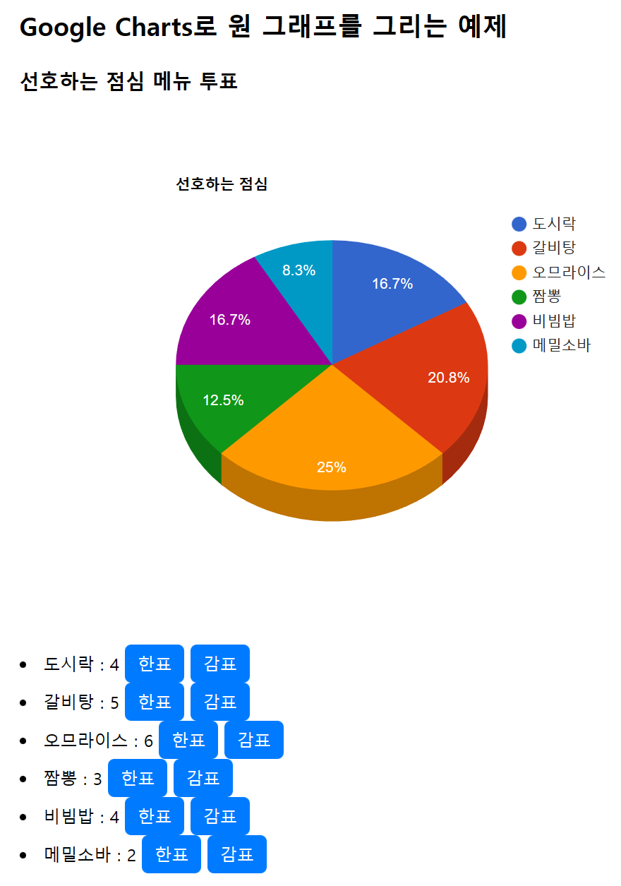 <h2>Google Charts로 원그래프를 그리는 예제</h2>