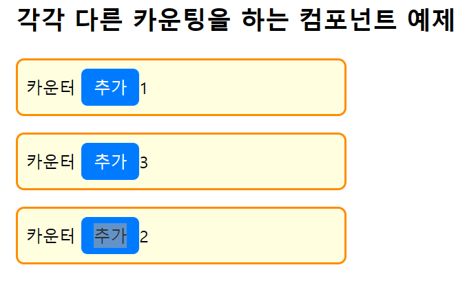 <h2>각각 다른 카운팅을 하는 컴포넌트 예제</h2>