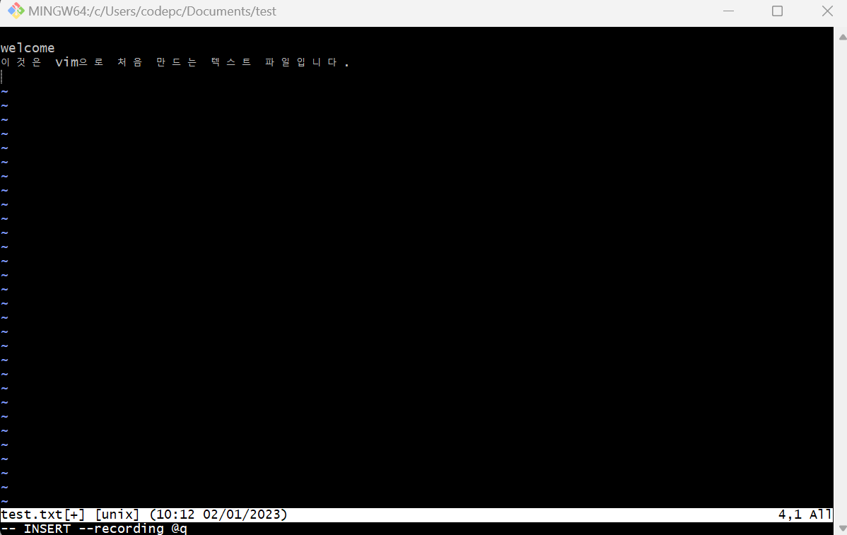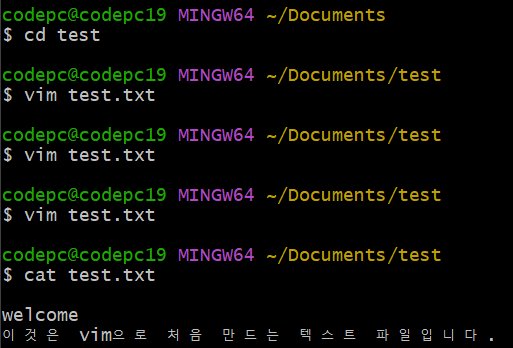 → vim test.txt (실행 모드)