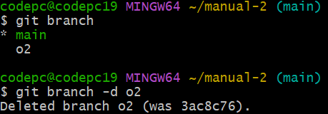 1. 아래와 같이 작성한다면 o2 브랜치가 삭제됩니다.