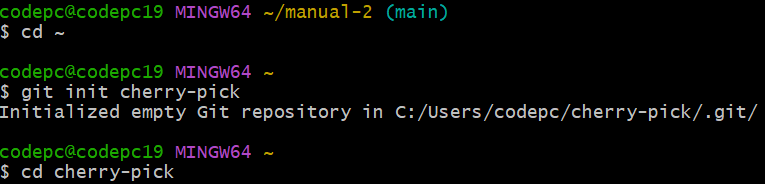 1. cherry-pick 디렉터리를 저장소로 만들고 이동합니다.