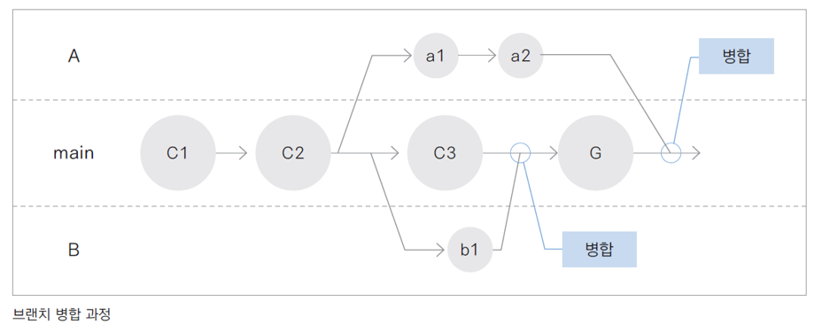 이렇게 분기했던 브랜치를 main 브랜치에 합치는 것을 병합(merge)한다고 합니다.